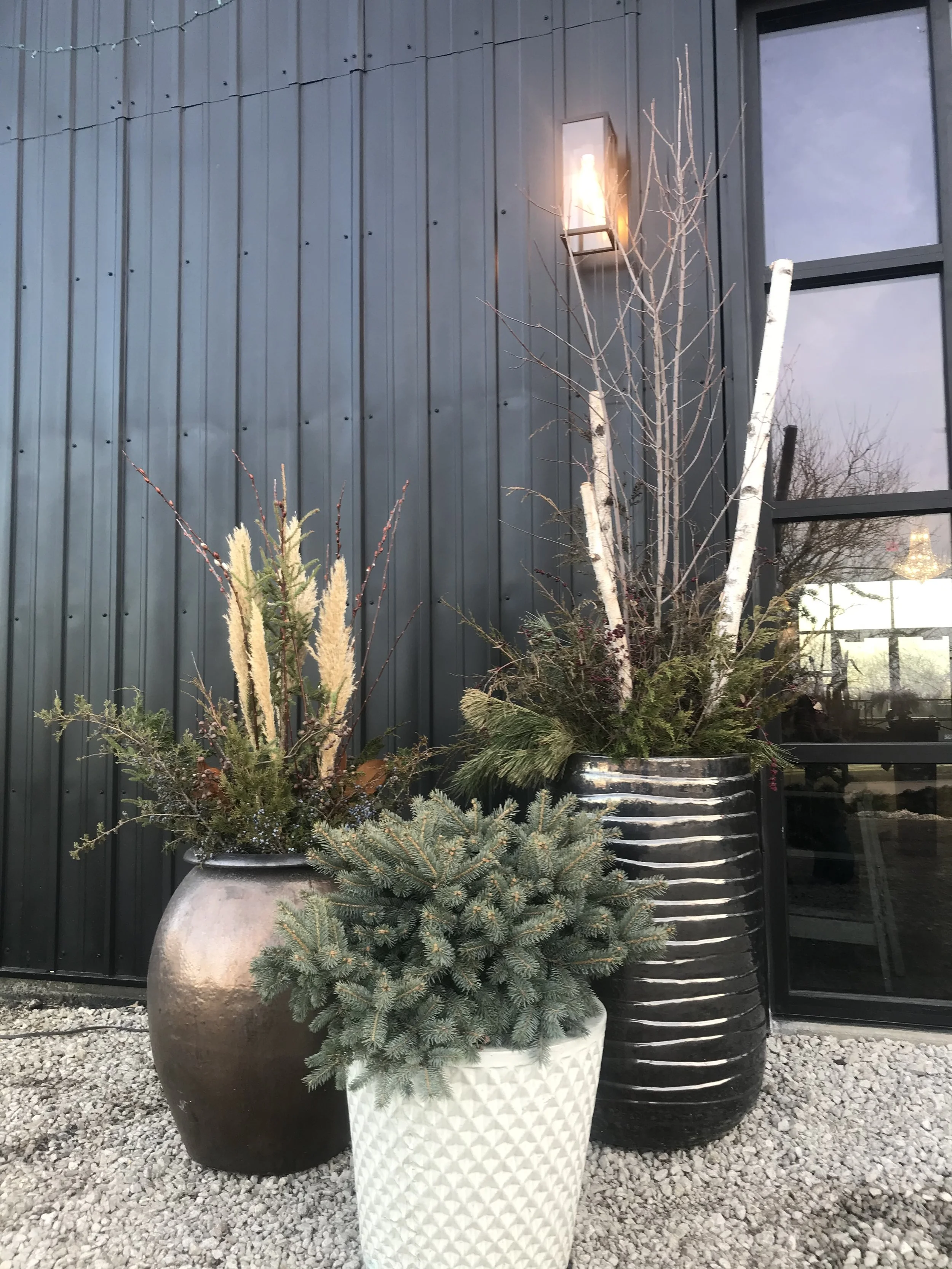 Each seasonal installation includes thoughtfully designed planters scaled to your home’s architecture. From lush spring plantings to layered winter greenery, every container is composed for impact and longevity.